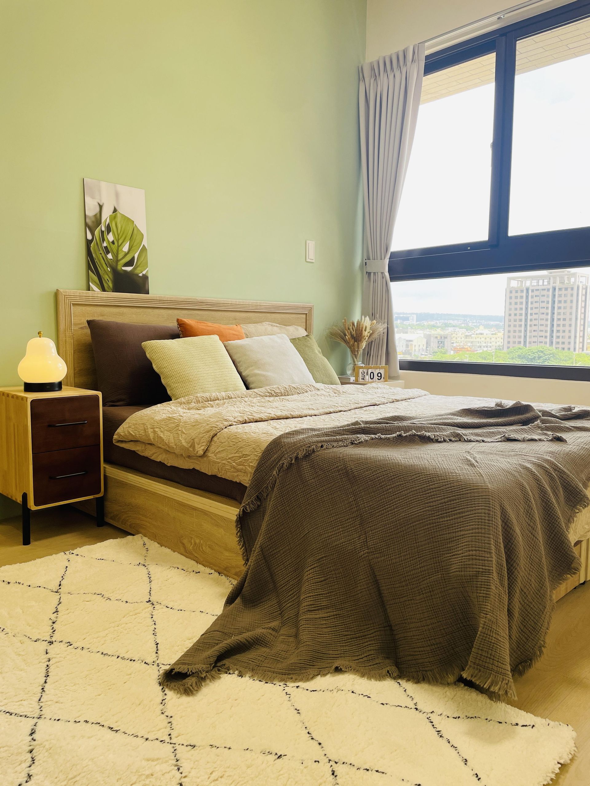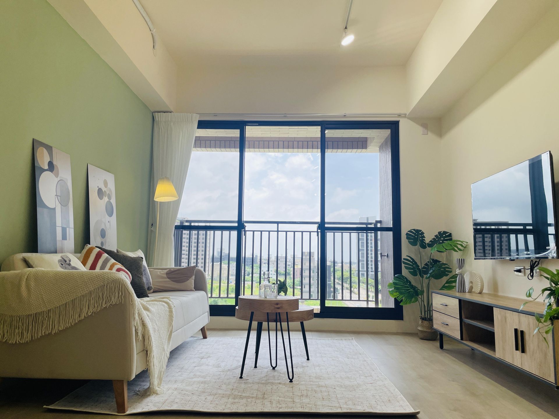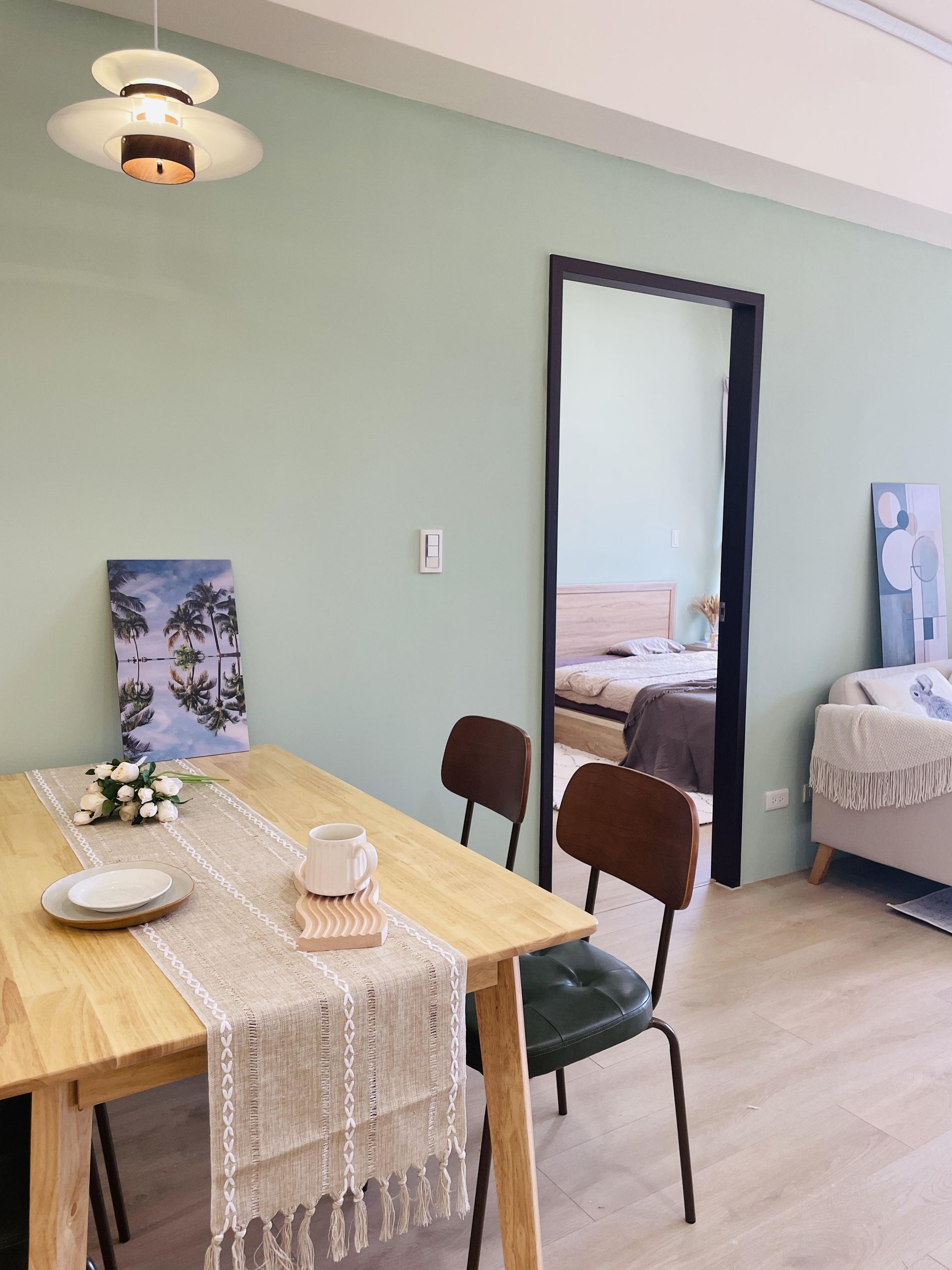 空間的設計主軸與佈置思路|以莫蘭迪色系為主,白、木質色、綠色,無印加北歐風。